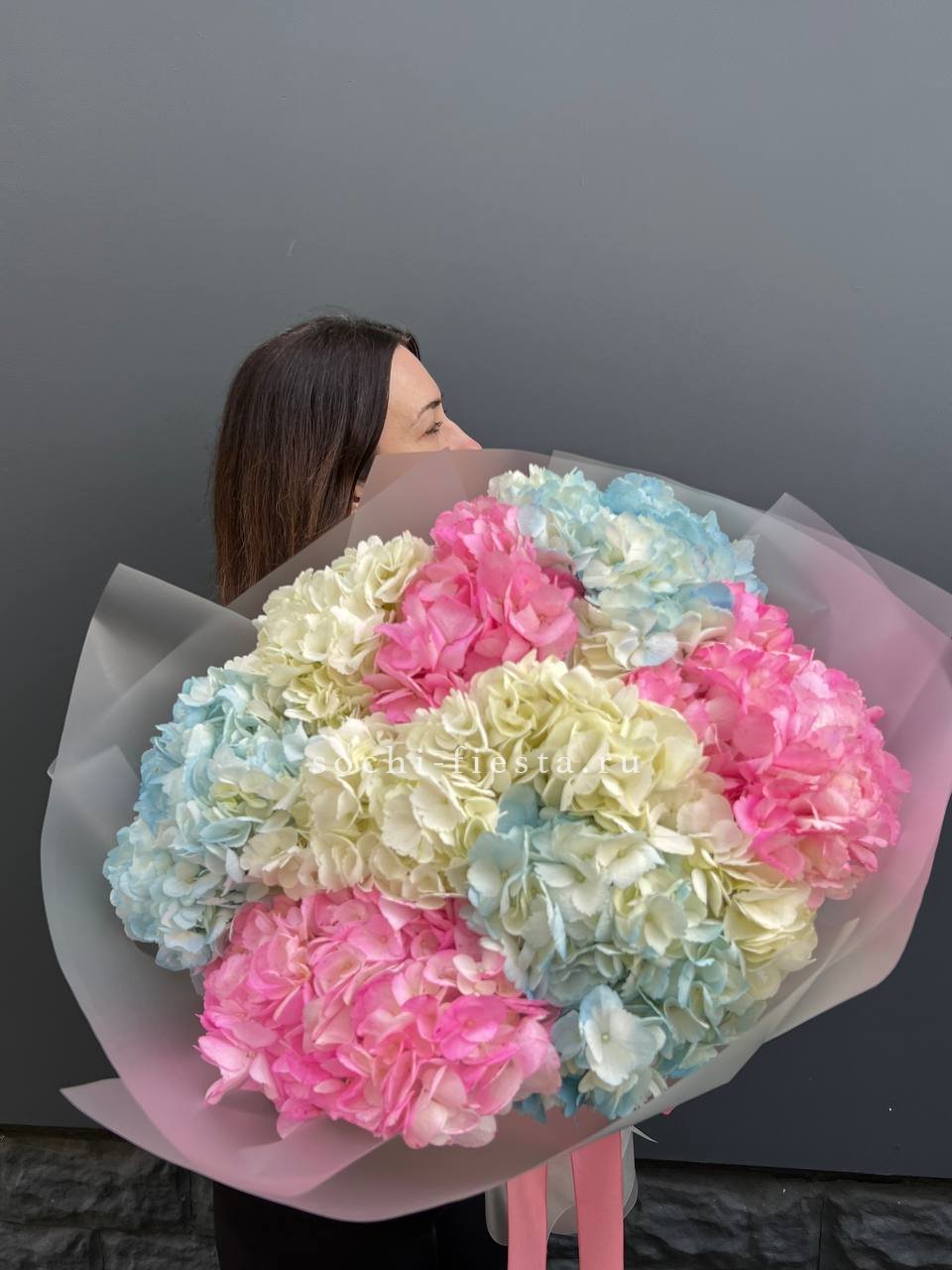 гортензия - 9 шт., лента, дизайнерская упаковка.