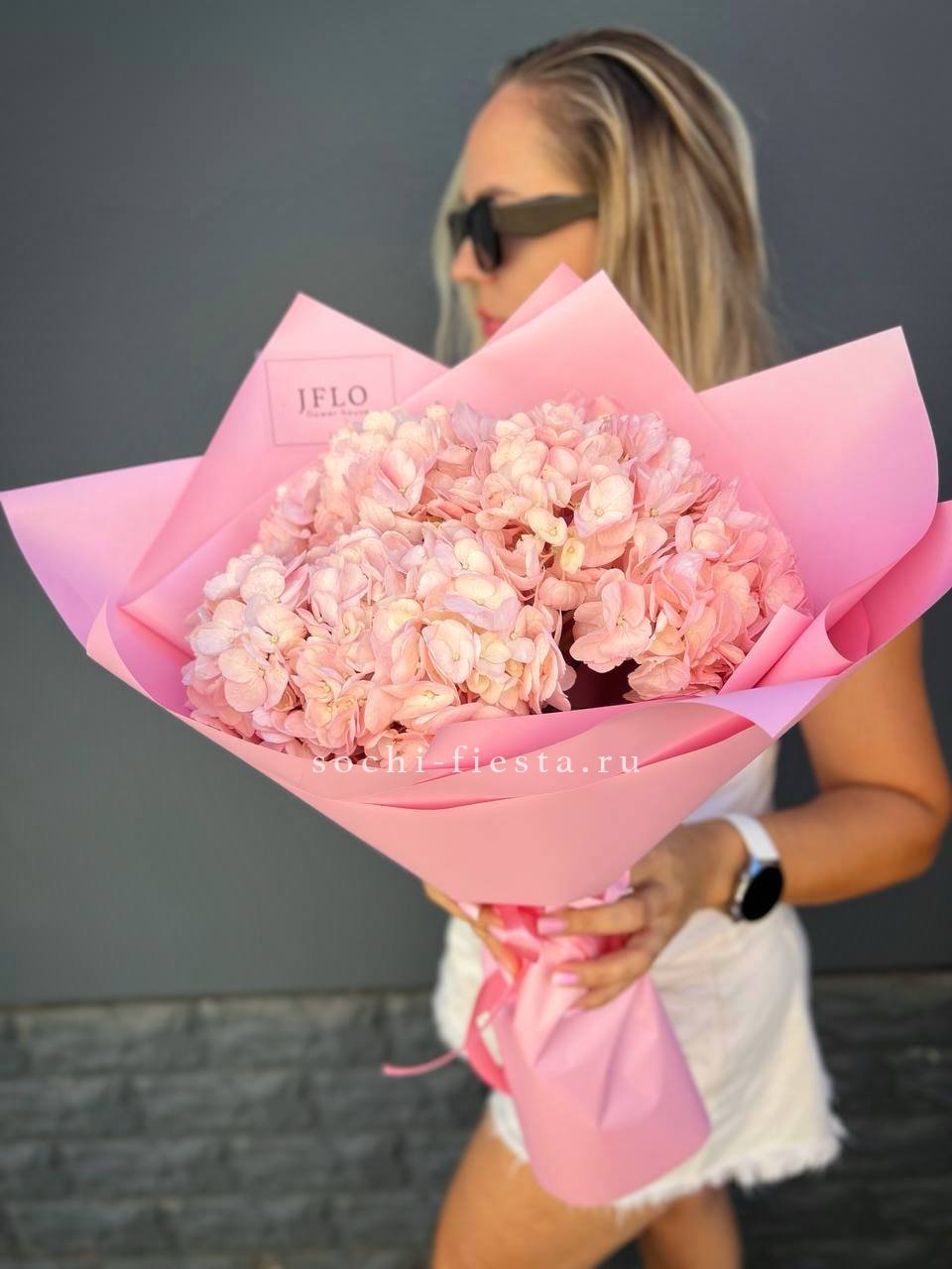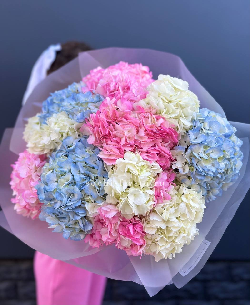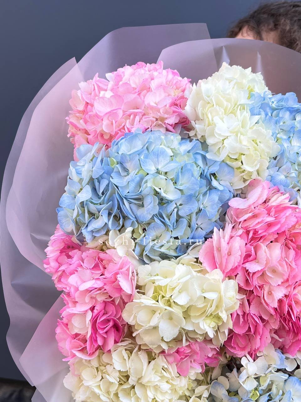 гортензия - 3 шт., лента, дизайнерская упаковка.