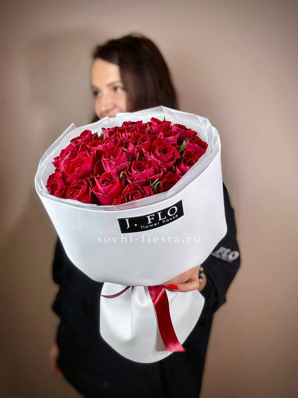 Изначальная цена указана за букет из 15 роз Состав букета на фотографии: 21 кенийских роз, лента, упаковка.