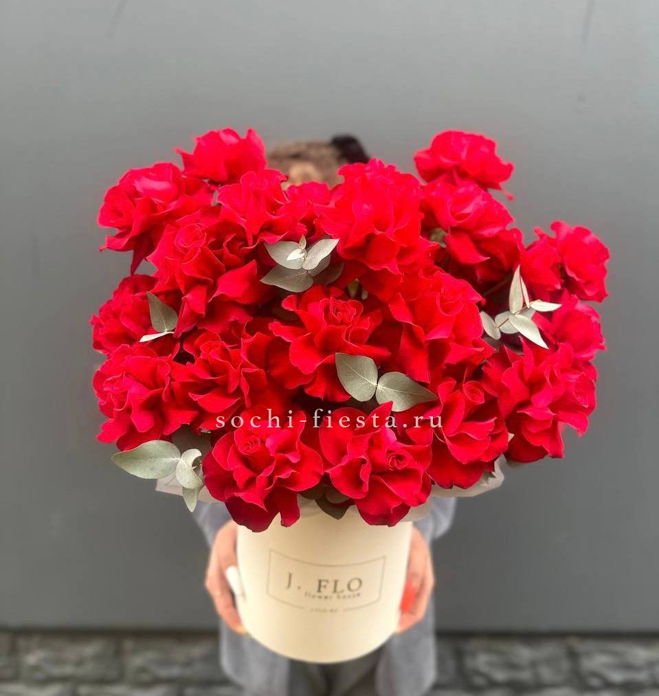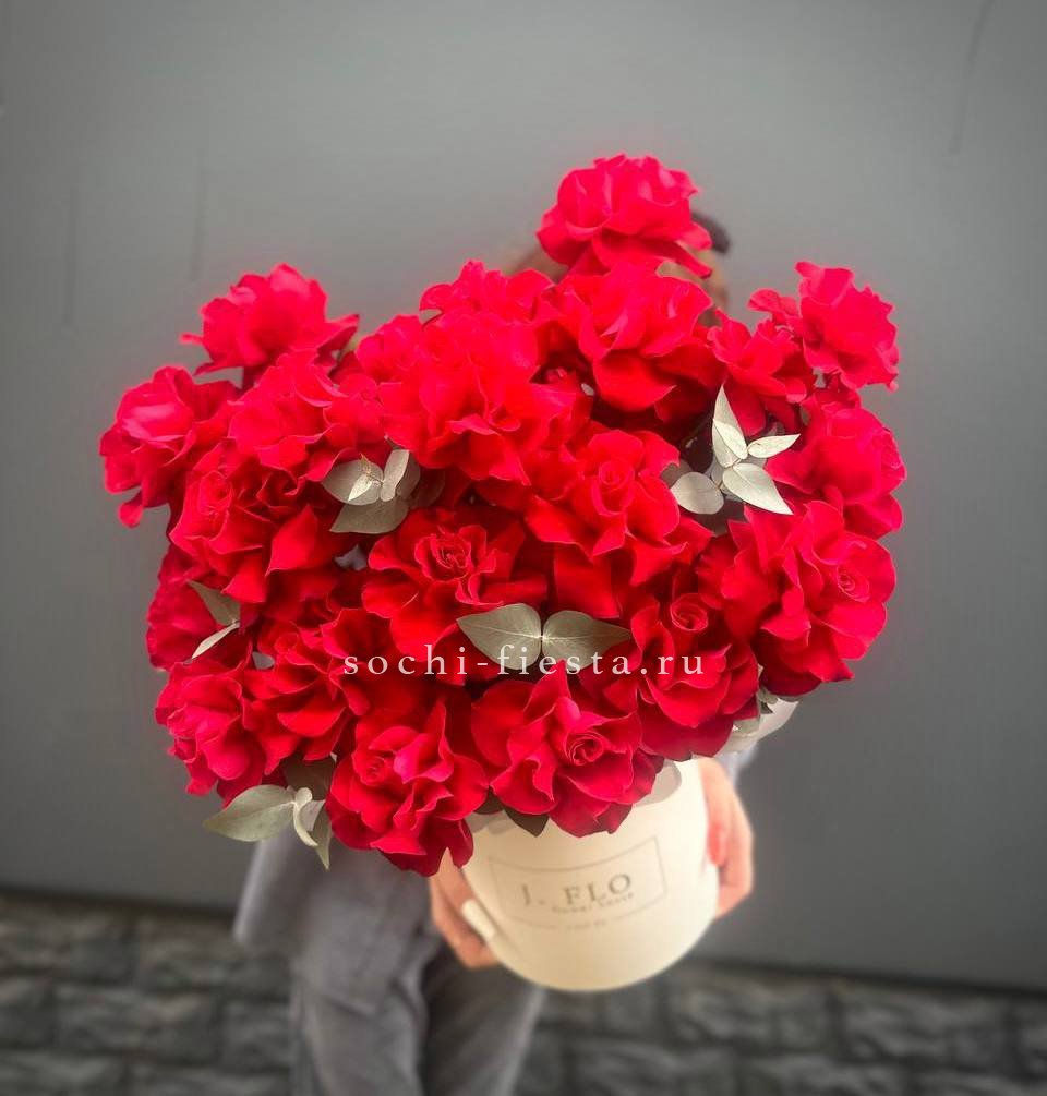 пионовидные розы Бомбастик, эустома, оформление.