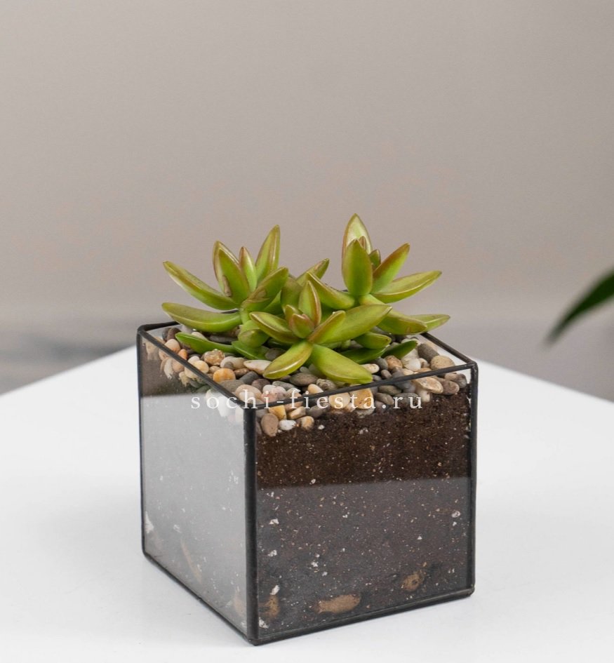 Флорариум Кубик с суккулентом Седум