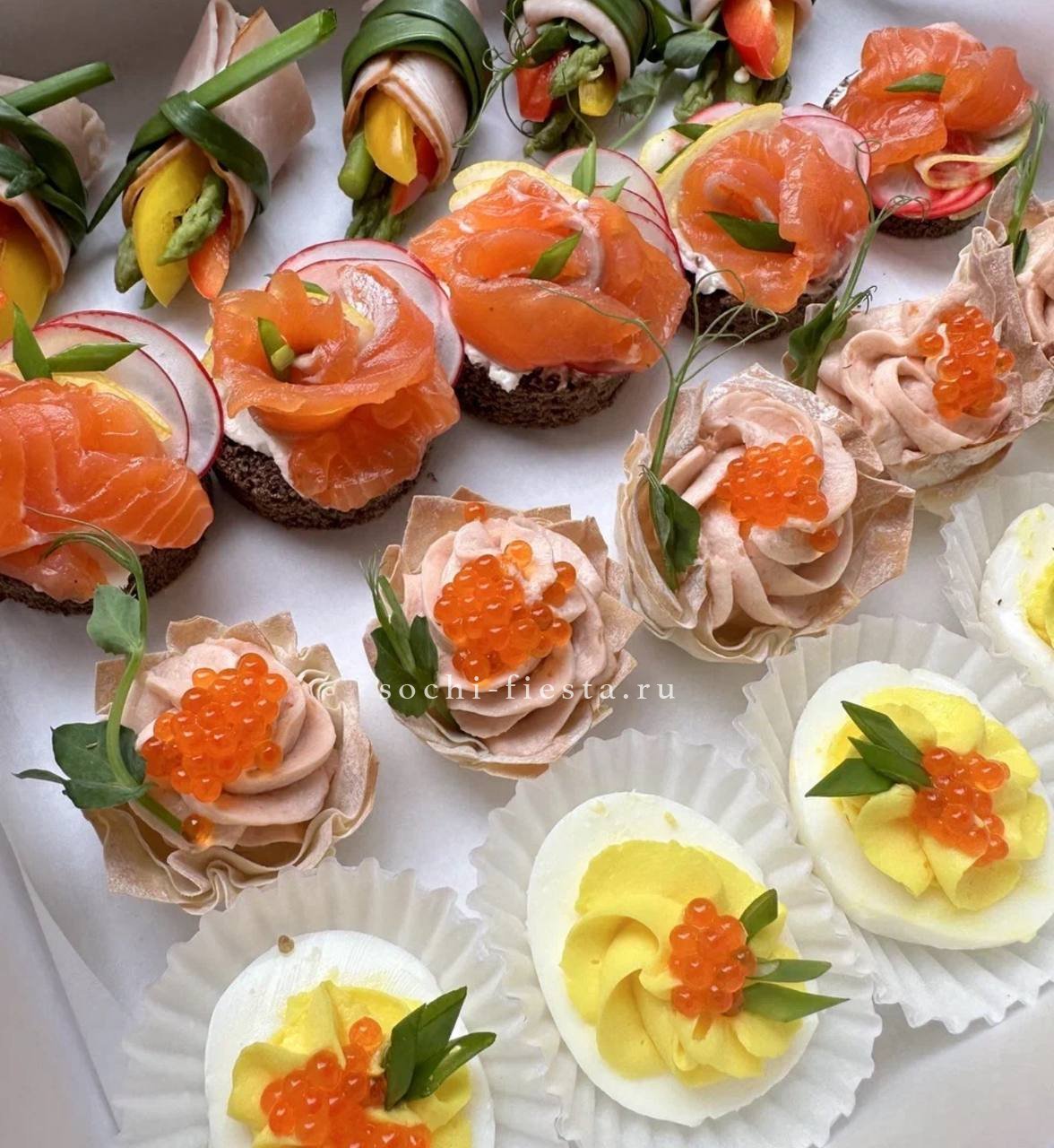 сезонные овощи с муссом из кальмара и авокадо. Щедро уложены в несколько слоев. Вес 2-2,5 кг. Бокс рассчитан на 8-10 персон.