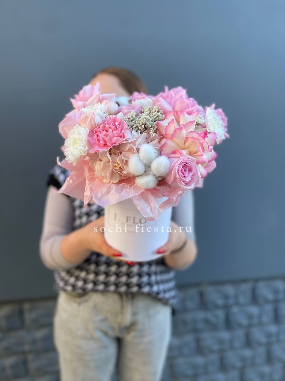Настоящий взрыв цвета и позитива! Эта пышная и многосоставная композиция в стильной коробке притягивает взгляды богатством форм и оттенков — от нежно-розового до насыщенного белого. Это не просто цветы, а целая история о радости, празднике и восхищении. Подарок, который гарантированно произведет яркое впечатление и останется в памяти надолго.