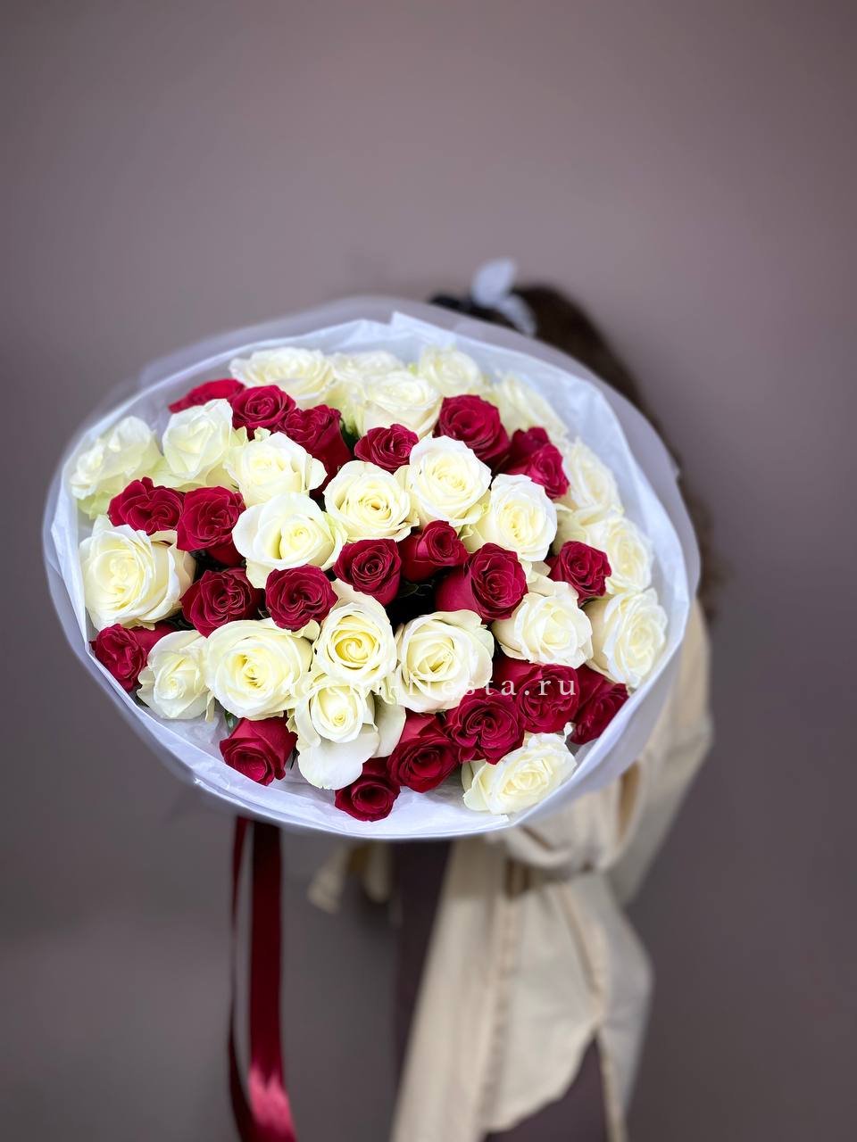 Для заказа товара "Букет из красных белых 45 роз" с доставкой в Тольятти нажмите в корзину