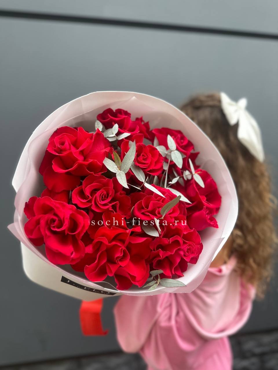 Семьдесят один бутон алого цвета образует масштабную композицию с мощным визуальным эффектом. Плотное наполнение и выразительная высота делают букет центром внимания в любом интерьере.