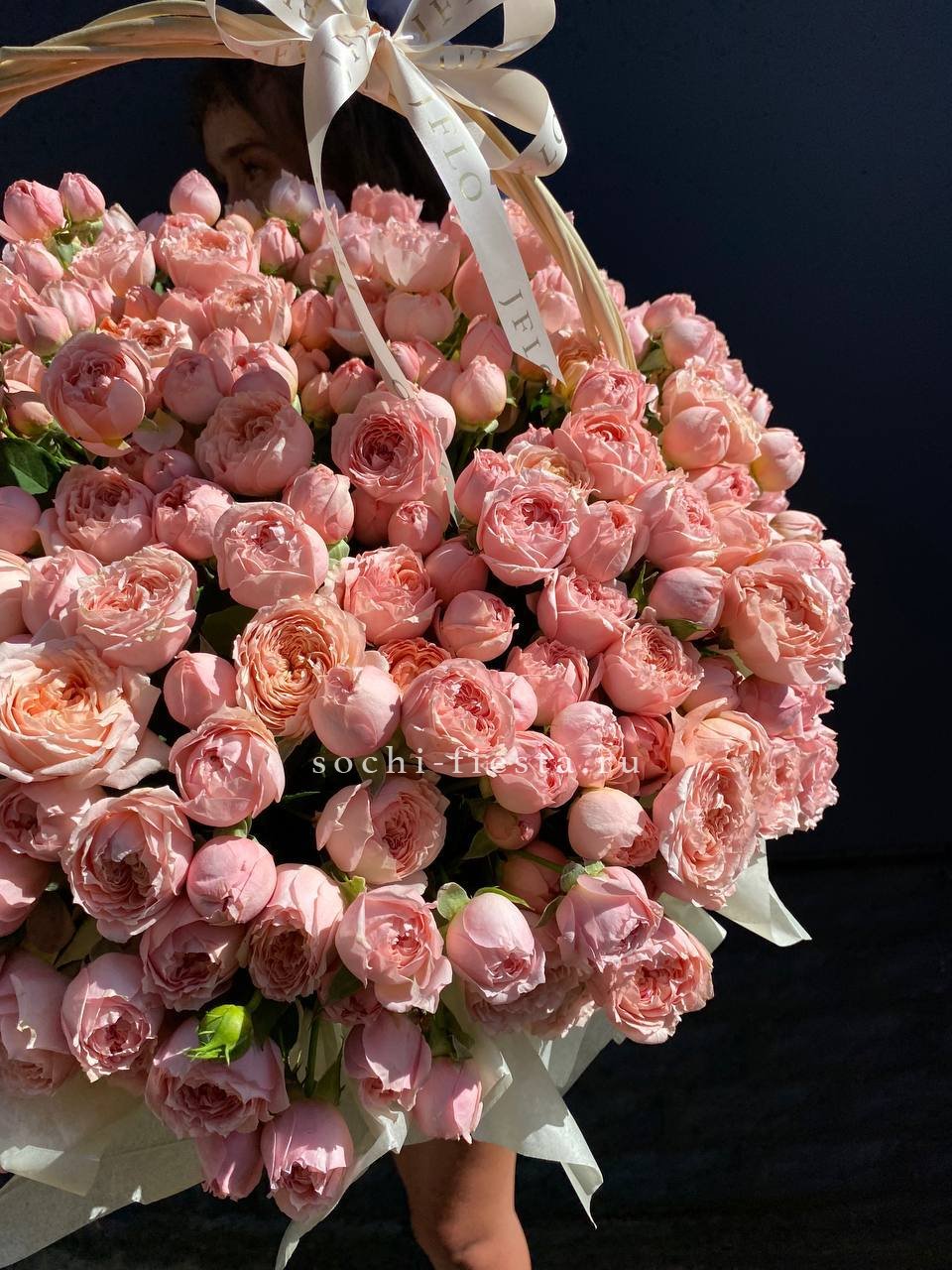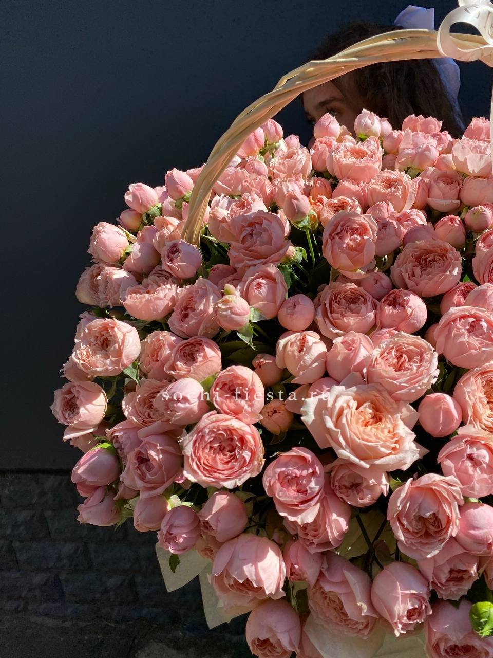 Корзина из пионовидных роз