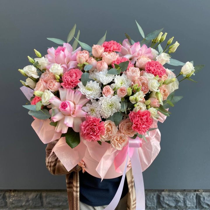 Сезонные позиции требуют предзаказа. Пионы в мае-июне — за 10-14 дней (местная логистика требует запаса). Тюльпаны к 8 марта — за 7-10 дней. Амариллис зимой — за 3-5 дней. Подсолнухи летом — за 3 дня.