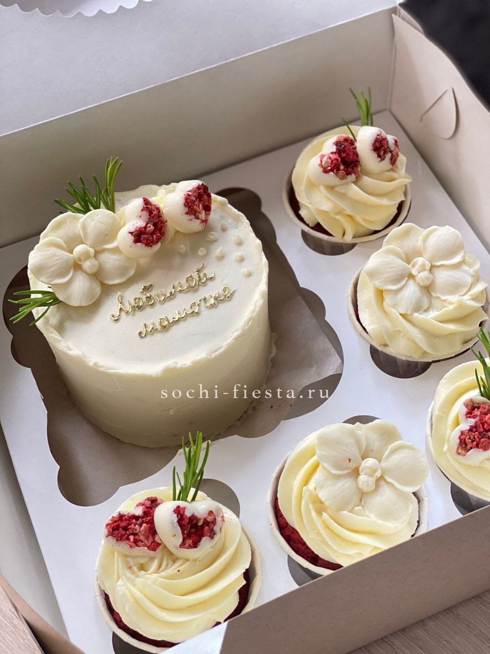 Весенний бенто-торт в бело-розовых тонах с акцентом на праздничную дату. Кремовая текстура создаёт лёгкий рельеф и цветочные мотивы. Два вкуса начинки на выбор.